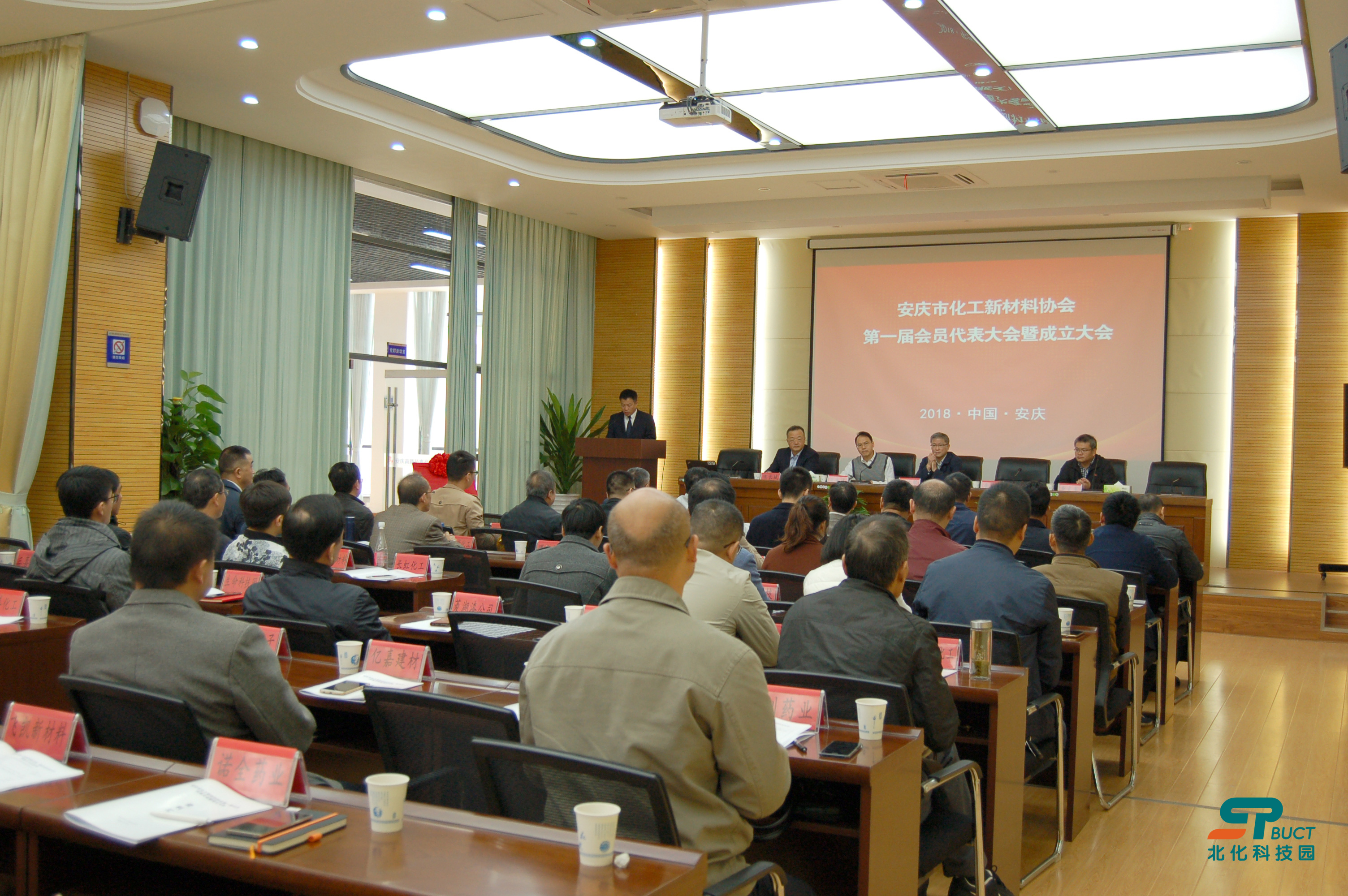 京津冀大学科技园联盟秘书长、北京北化大科技园有限公司总经理张国彬代表京津冀大学科技园联盟致辞,指出安庆市化工新材料协会的成立,将为加快安庆市产业转型升级,推进化工新材料等新型产业快速发展提供创新资源聚集的平台。希望协会能够充分发挥北京化工大学安庆研究院背后的高校科技资源优势,结合安庆市当地企业的产业化经验与市场资源优势,实现会内联合、会外整合,努力构建企业、政府、高校科研院所之间科技创新、创业的高效沟通交流平台,共同推进面向节能环保、新材料、新能源、高端装备等方面的高新技术产业化。张国彬总经理表示,北京化工大学科技园将重点将北化大学科技园在新材料领域积累的创新资源,优先向安庆化工新材料协会推介,创造条件和机会促进各类创新资源通过协会与安庆市企业加强合作。