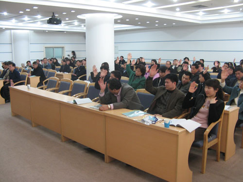 最后校工会主席王同奇代表校领导做了重要讲话。他指出这是一次内容充实,很有效果的会议。第一,2008年后勤寒假干部培训会是具有里程碑意义的会议,是近年来学校党政领导在认真研究基础上提出来的,对我们后勤的发展指明了方向,希望我们在学习领导讲话的基础上进一步理解,消化。第二,本次职代会发挥了职工代表的高度主人翁精神,对集团内部建设的规范管理具有重要的现实意义。第三,工会组织对于本次职代会吸收的136名新会员,他们将和学校的其他会员融为一体,在工会内部大家地位平等。最后祝愿后勤集团在今后的工作中再创辉煌。