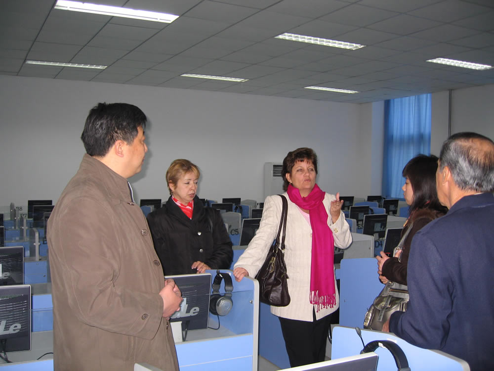 我校陈标华副校长、国际处杨卫民处长、发展规划处张冰副处长、国际处耿海萍副处长等共同会见了到访客人。会谈中,张冰副处长向客人详细介绍了我校“211工程”建设过程和十年来所取得的巨大成绩,并回答了部长所关心的问题。代表团还参观了我校电教楼和教学楼内的语音实验室,对我校的语言教学环境和设备表现出浓厚的兴趣。