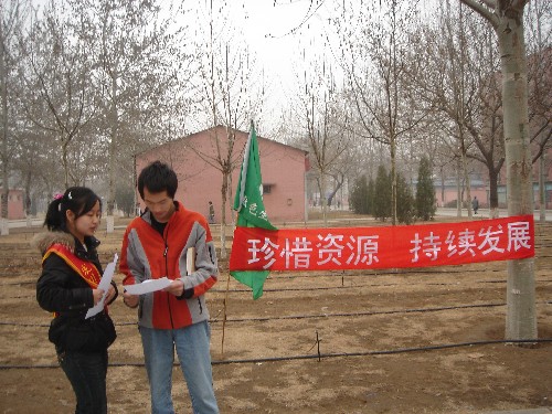 2008年3月22日是第16个世界水日。当天,我校绿色生命环保协会的同学们在北区校园、亢山广场及地坛公园等地开展了以“珍惜水资源,走可持续发展道路”为主题的节水宣传活动。