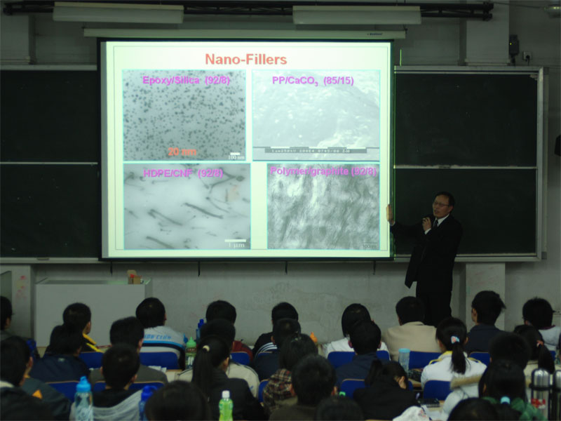 3月27日晚6点,北阶三内座无虚席,材料学院聚合物工程系主任于中振教授为同学们带来了一场关于“聚合物基纳米复合材料研究进展”的讲座。