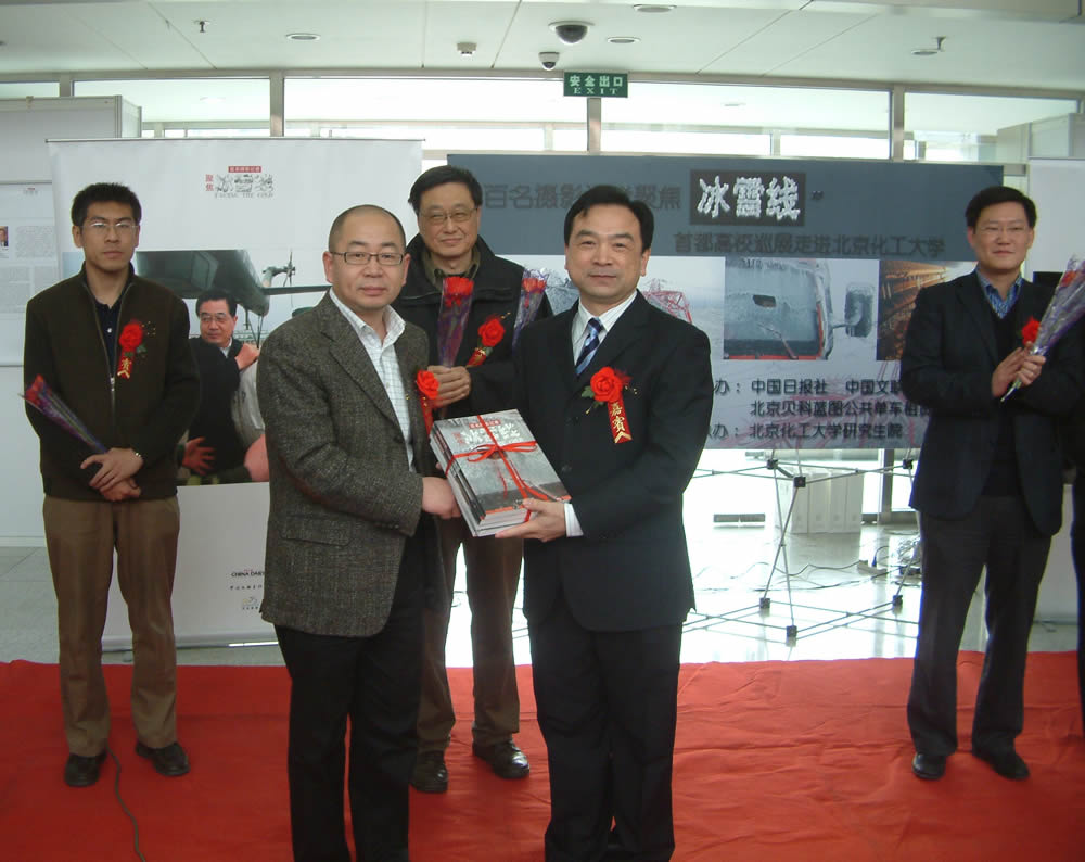 4月1日上午,“百名摄影记者聚焦冰雪线”摄影展走进北化开幕式在科技大厦中央大厅隆重举行。中国摄影家协会副主席、中国日报社总编辑助理王文澜、北京化工大学党委副书记兼副校长任新钢、北京贝科蓝图公共单车租赁有限公司董事长王勇、研究生院副院长贾梦秋、研究生院副院长罗伟、学工办副主任王小健、中国日报社亚洲新闻图片网主编徐京星等领导和嘉宾共同出席了开幕仪式。