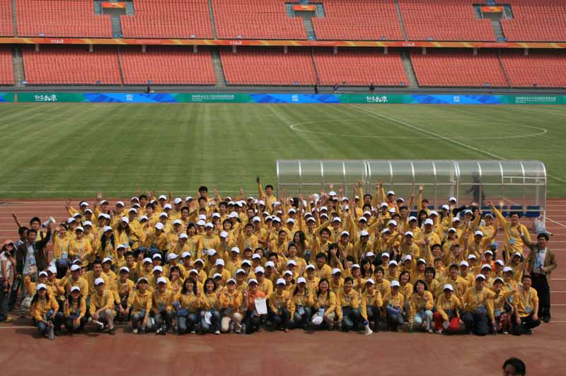4月18日早9:00,我校工人体育场场馆团队参加“好运北京”2008奥运会女子足球预选赛附加赛的236名志愿者从东校区准时出发,全部参加到4.19测试赛前的大规模演练中。