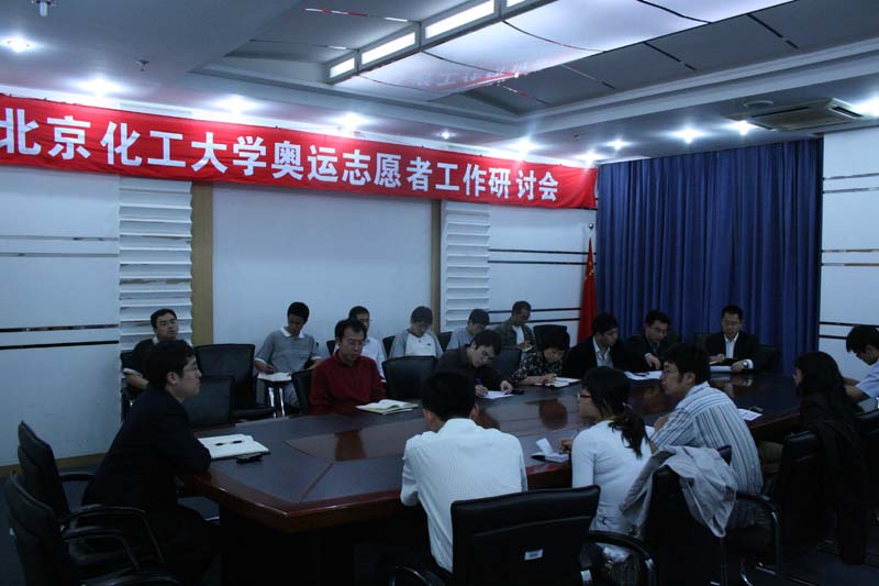 2008年5月15日下午,北京化工大学奥运志愿者工作研讨会在图书馆一层会议室召开,我校奥运志愿者工作办公室主任、校团委书记董振兴老师主持了会议,来自我校工人体育场、顺义奥林匹克水上公园、城市志愿者、奥运媒体村工作人员、企业志愿者等运行团队的负责老师、志愿者代表参加了会议。