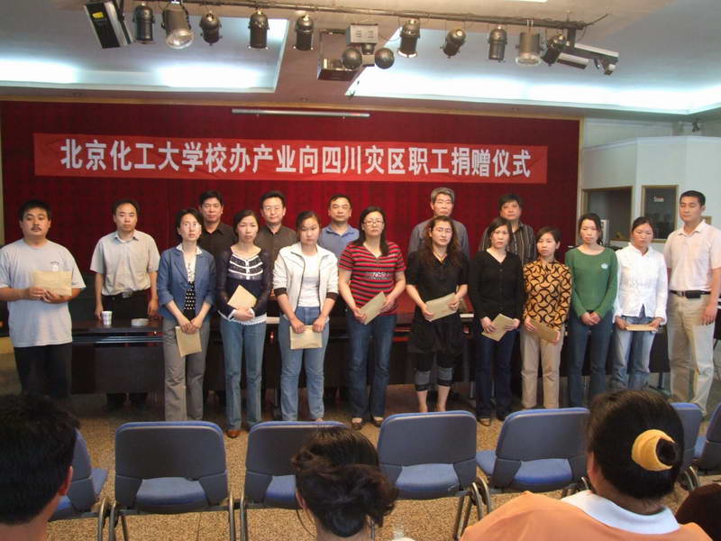 5月12日四川汶川发生特大地震后,我校产业干部职工时刻牵挂着灾区同胞的安危,在第一时间了解到北京化大化新科技股份有限公司有11名职工家中受灾的情况后立即发出捐款倡议书,短短三天时间,就得到了校办产业各企业和职工的积极响应,共有15个单位、超过200名职工捐款,本次捐赠的 8.2万元用来帮助受灾的11名职工修建房屋。