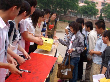 首先,在党总支和团总支的号召和带领下,各党支部、团支部开展为灾区人民捐款活动,同学们积极响应,纷纷慷慨解囊,有些贫困生也拿出自己为数不多的生活费为灾区人民献上一份爱心。同学们通过校工会、学生会、红十字会、网上银行等方式共为灾区人民捐款近4万元。