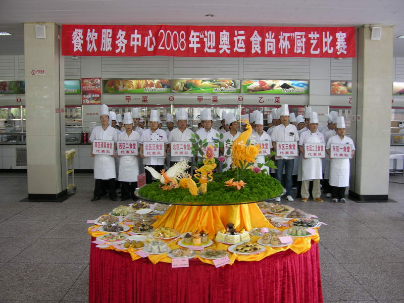 6月6日14点30分,后勤服务集团餐饮服务中心2008“迎奥运 食尚杯”厨艺技能大赛在东区一食堂隆重举行,北京化工大学副校长李显扬、后勤服务集团总经理马成元、学工办副主任任世雄、后勤服务集团副总经理高建国、监察部部长邱官良以及后勤各中心负责人出席,来自我校东区、北区、西区食堂的10支代表队参加了此次大赛。