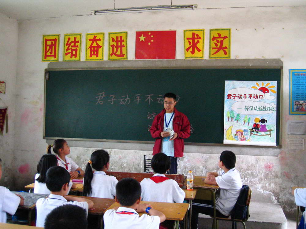 六月,太阳从漫天红霞中喷薄而出,把万丈金光洒向大地,一种的**,湿热的气息阻挡不住环保志愿者蓬勃向上的热情。继成功开展环保骑行活动后,化学工程学院环保志愿者协会又在第一届昌平区高校环境文化节期间来到昌平区育颖小学,开展了“君子动手不动口”的环保宣传活动。