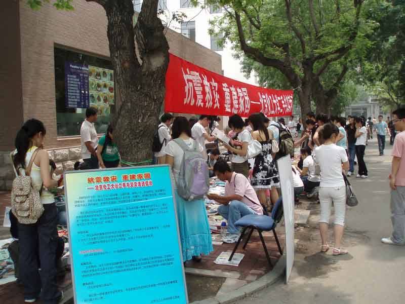 为了有效地利用资源,为抗震救灾做出贡献,由校团委主办,04级毕业生志愿者承办的“抗震救灾、重建家园——北京化工大学二手书义卖活动”于6月17日圆满结束。本活动为期三天,共筹得善款9301.1元。部分书籍还将于近期送至北区进行义卖,所有款项都将捐至“中国青少年发展基金会”,为遭受5.12汶川大地震的孩子们的学业尽绵薄之力。