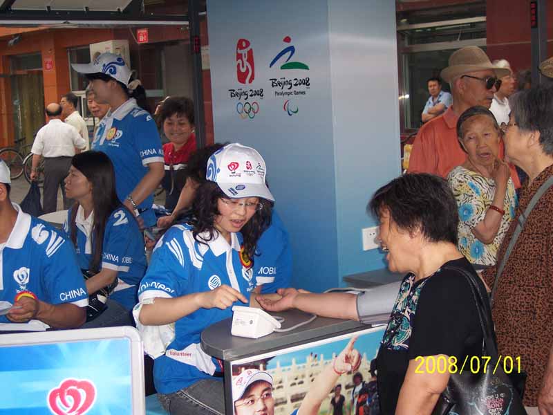 早上九点,志愿者统一着装,正式上岗。在整个服务过程中,志愿者们不畏辛苦,热情服务,地铁站边,他们满带笑容为行人指路;血压测试点,他们为老人捋下袖子;服务台前,他们温暖的双手奉上奥运知识的宣**,一个个简单的动作传递出一种神圣的职责,在这样的一传一递间,志愿服务的精神已经深深地在每个人的心中植根。“蓝色精灵”们迅速成为东城区一道亮丽的风景线,过往行人纷纷驻足,志愿者耐心细致的对行人提出的问题作了详细的解答,更有热心的行人积极的了解整个服务过程,并表示他们也愿意参加到这类公益性活动当中,为北京奥运会贡献自己的一份力量。