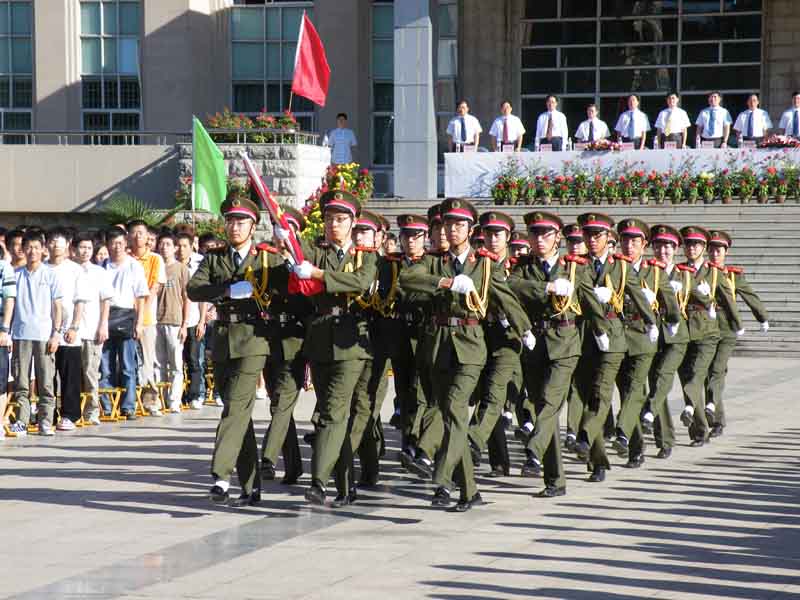 在嘹亮的国歌声中,北校区国旗护卫队举行了庄严的升旗仪式,拉开了典礼的序幕。