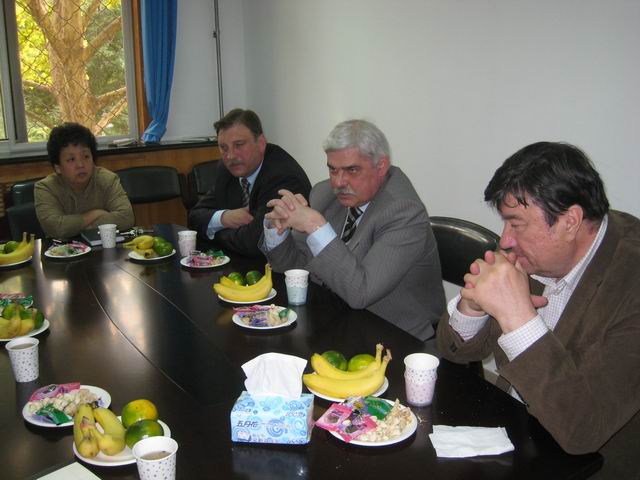 时值我校欢度五十周年校庆之际,机电学院与莫斯科环境工程大学举行人才培养和科研合作会议。2008年9月27日下午3:00,研究生院院长张卫东,研究生院副院长贾梦秋,机电学院院长王奎升,机电学院副院长、塑机所所长吴大鸣等与到访的莫斯科环境工程大学(原莫斯科化工机械学院)Baranov校长、Bahomov副校长、Smirnov外办主任一行三人就两校互派留学生以及一些科研领域问题进行了洽谈。