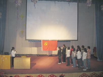 典礼在北区低年级党支部新老成员面向党旗庄重宣誓下结束。