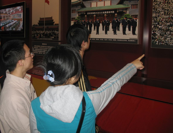 2008年10月25日,信息学院大三、大四近百名学生党员及入党积极分子在辅导员李更生老师的带领下来到中国人民革命军事博物馆,参观了“万众一心、众志成城——抗震救灾主题展览”。