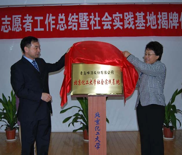 2008年11月19日,北京化工大学青啤志愿者工作总结表彰大会暨社会实践基地揭牌仪式在会议中心多功能厅隆重举行,校党委副书记兼副校长任新钢,学工办副主任任世雄,研究生院副院长罗伟,青岛啤酒股份有限公司副总裁姜宏,青岛啤酒股份有限公司人力资源管理总部部长汪岩,青岛啤酒股份有限公司营销中心人力资源总部总监李春龙,青岛啤酒股份有限公司驻京办事处主任刘泽鸿出席了此次会议,大会由校团委书记董振兴主持。