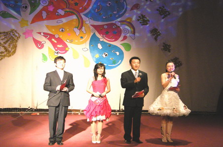 热闹喜庆的开场歌舞《欢天喜地》拉开了晚会序幕,随后同学们带来了丰富多样的文艺表演,有幽默诙谐的相声《新文章会》、劲爆的舞蹈串烧、富有青春律动的流行歌曲和带有民族风情的《新疆舞》,而同学们演唱的《三国演义》、《精忠报国》则向我们展示了经管院实力派歌手的风采。2008是奥运年,晚会中我校的奥运会志愿者们合唱了原创的奥运歌曲《星光》,表达了自己作为奥运会志愿者的光荣和自豪;研究生和本科生教学秘书冯亚峤、潘丽京、刘春梅和教师志愿者林莉老师共同献唱一曲《再看一眼》,表达了对全院志愿者的尊敬和对那段时光的怀念。“师生同乐”,老师们自然也带来了精彩的节目:王淑惠老师的《吐鲁番的葡萄熟了》、赵宝元老师的京剧选段《甘洒热血写春秋》、高红霞、郑小平老师的《城里的月光》,引起了一阵阵雷鸣般的掌声。