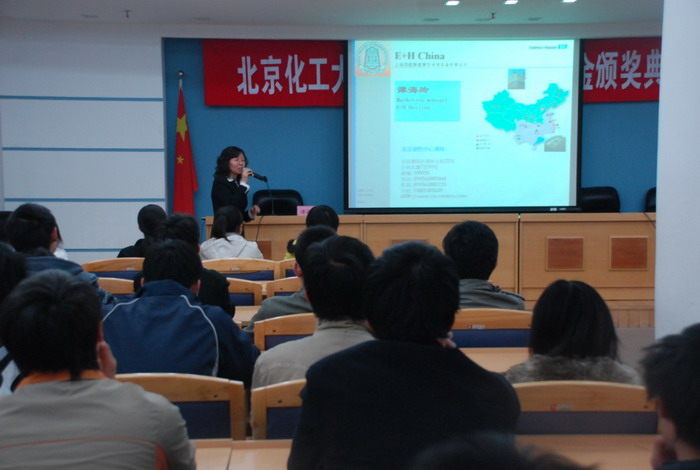 最后,由E+H公司北方市场部经理谭海玲女士为在场同学做了关于《工业过程自动化及仪表发展新动态》的报告,2008年度“E+H”奖学金颁奖典礼圆满落下帷幕。