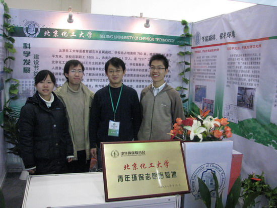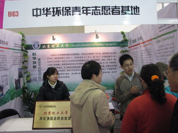 我校本次参展的主要内容包括:北京化工大学“首家中华环保青年志愿者基地”建设、青年学生参加节能环保社会实践、科技实践活动的风采,学校“十一五”期间在可再生能源利用、中水回收再利用、供暖锅炉节能改造等方面取得的成果等。展览台前,我校环保协会的指导老师和同学们热情地为来往者讲解,参观者或驻足观看、或认真询问,我校青年学生热情参与节能环保的行动和学校在节能减排工作中所取得的卓有实效的成果让现场的观众赞叹不已,大家纷纷表示,从身边的小事做起,每个人都会成为节能环保的明星!