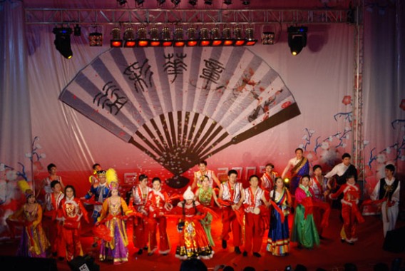 08级辅导员们以优美的民族舞、喜庆的腰鼓舞和合唱歌曲《大中国》,把全场的气氛推向最**,充分表达了全校师生对祖国、学校的祝福和对建国60周年的热情期盼。