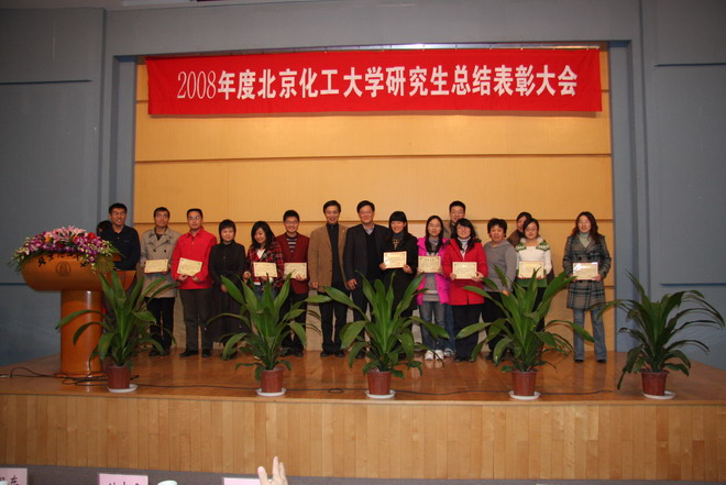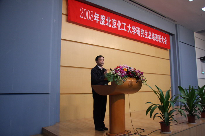 12月23日下午两点半,2008年度北京化工大学研究生表彰大会暨第十四届研究生科技文化节闭幕式在我校逸夫会议中心三层学术报告厅召开。北京化工大学党委副书记兼副校长任新钢、副校长付志峰、研究生院院长张卫东、学生工作办公室主任罗伟、研究生院副院长贾梦秋、杜洪光、学生工作办公室副主任王小健、贾涛、校团委书记邹立娜及各学院分党委(党总支)领导、研究生辅导员出席了本次表彰会。大会由北京化工大学研究生院副院长许利民主持。