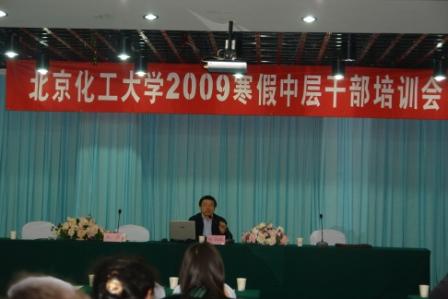 培训期间,科技部政策法规司梅永红司长应邀作了关于我国当前经济形势和科技创新的专题报告,阐述了自主创新的重要意义以及科技工作应对当前全球危机的思考。校党委王芳书记总结了干部聘任工作,并重点围绕即将开展的学习实践科学发展观活动,要求全体中层干部进一步统一思想、明确目标,找准问题和重要突破点,勇于破解难题,不断提高执行力和创造力,着力推动学校科学发展。王子镐校长结合学校教师队伍建设、学科建设、人才培养、科技工作以及岗位聘任工作,明确指出了学校要实现又好又快发展必须突出办学特色,走出不断创新的发展之路。谭天伟副校长作了关于学校“211工程”三期建设和优势学科创新平台建设专题报告。关昌峰副书记作了关于如何提高领导干部战略执行力的专题报告。