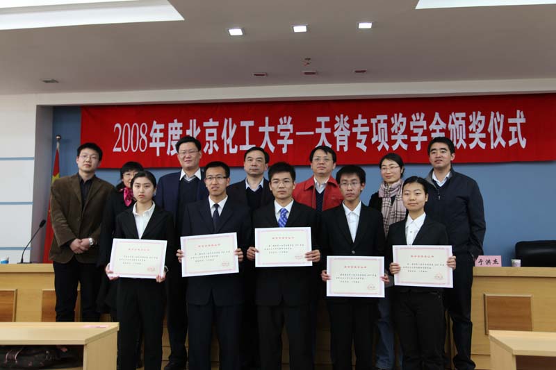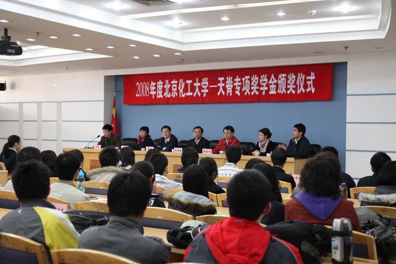 2009年4月1日下午4:00,北京化工大学2008年度天脊专项奖学金颁奖仪式在逸夫图书馆中心会议室隆重举行。校党委副书记兼副校长任新钢、天脊煤化工集团总经理助理兼人力资源部部长菅骏飞、校学生工作办公室主任罗伟及相关学院分党委(党总支)副书记商云龙、于洪杰、于景华等出席了颁奖仪式。颁奖仪式由学生工作办公室副主任贾涛主持。