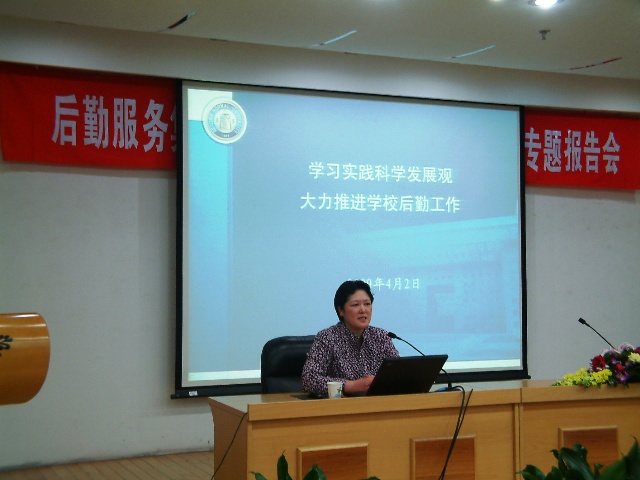 在报告中,樊秀萍校长指出,要充分认识学习实践科学发展观活动的重大意义,明确后勤服务工作在学校建设发展过程中担当的重要使命,学习实践科学发展观活动是深化后勤社会化改革,为学校提供坚强保障的迫切要求,是后勤科学发展的强大动力和内在需求。