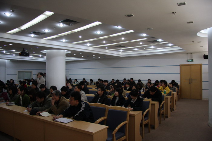 首先,许利民老师充分说明了开展深入学习实践科学发展观活动的重要意义,指出开展学习实践活动是进一步用中国特色社会主义理论体系武装广大党员干部、教育广大研究生的重大举措;是全面推进创新型人才培养、增强科技创新和社会服务能力的迫切需要;是以改革创新精神推进学校校园文化建设,提高研究生整体素质的必然要求。接着,他提出了把握学习实践活动的指导思想、主要任务和活动主题。最后,详细介绍了扎实推进学习实践活动的整体部署,有步骤、有区别的开展学习调研、分析检查、整改落实三个阶段。