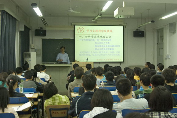 白老师深入浅出的讲座赢得了全场热烈的掌声。许多同学在会后与白老师的交流中纷纷表示正是由于深入学习科学发展观,使自己对学校的发展、个人的发展有了更清晰的认识。(理学院供稿)