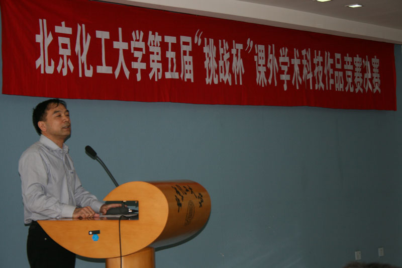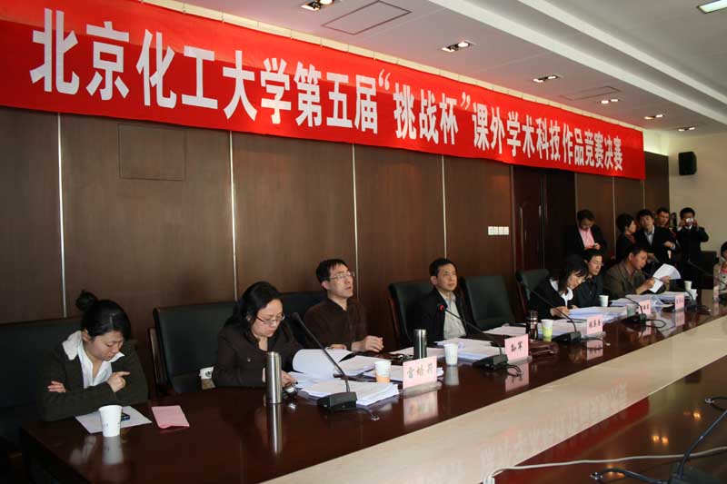 2009年4月20日下午15:30,北京化工大学第五届“挑战杯”课外学术科技作品竞赛决赛隆重举行。本次决赛分为自然科学类、科技发明类和社会科学类三个组别,分别由化工学院团总支、信息学院团总支和经管学院团总支承办,在会议中心中心会议室、科学会堂二层会议室、行政楼203会议室同时举行。
