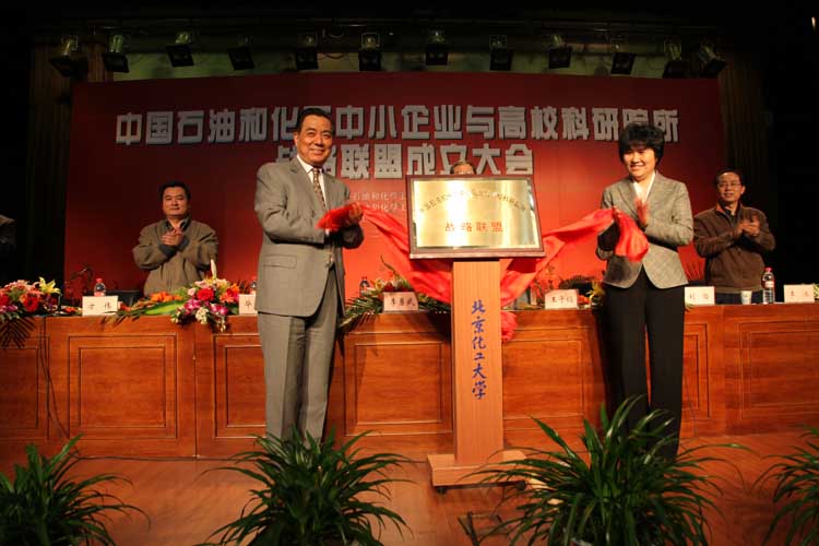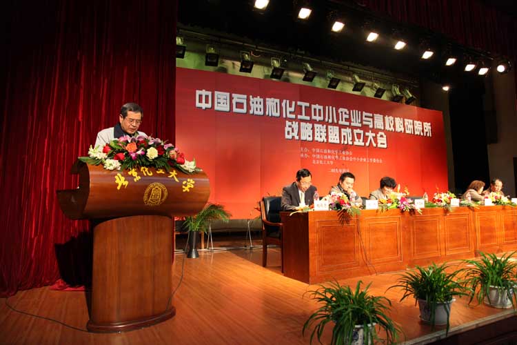 4月21日下午,中国石油和化工中小企业与高校科研院所战略联盟成立大会在我校科学会堂成功举行。中国石油和化学工业协会会长李勇武、人社部人力资源市场司司长毕雪融、教育部全国高校学生咨询与就业指导中心方伟处长、国家发改展委中小企业司刘怡处长、科技部火炬高技术产业开发中心李冰副处长出席会议。中国石油大学(北京)、青岛科技大学等15所原化工部属和石化类院校校领导,天津大学化工学院、大连理工大学化工学院等24所综合性大学化工类院系负责人和50余家中国石油和化工中小企业的代表参加了成立大会。北京化工大学党委书记王芳、校长王子镐出席会议。大会由中国石油和化学工业协会副会长兼秘书长赵俊贵主持。王子镐校长代表参会高校作大会发言。