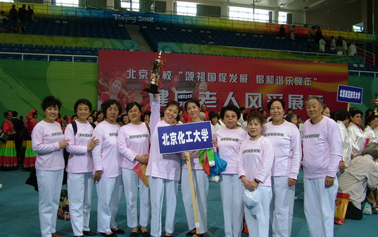 4月22日上午,我校老干部健身舞队70余位老同志,在北京科技大学体育馆参加了由市委教育工委、市教委主办,市教工委、市教委老干部处、北京市教育老干部活动中心承办的“北京高校‘颂祖国、促发展、倡和谐、乐晚年’健康老人风采展示活动”。此次活动是北京市委、市委教育工委、市教委在教育系统老同志中开展的“颂祖国、促发展、倡和谐、乐晚年”主题实践活动的重要内容。