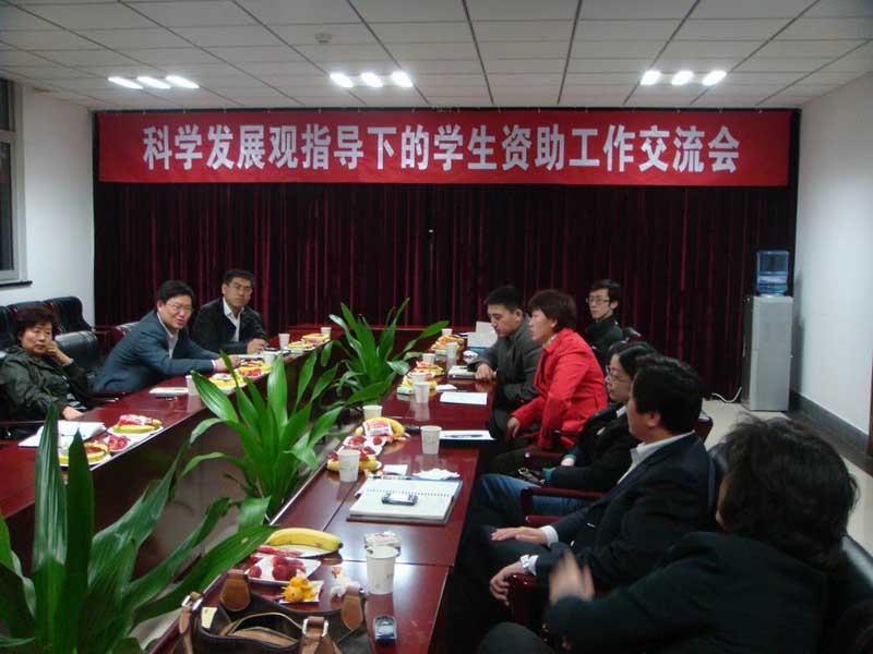 2009年4月23日下午4点,科学发展观指导下的高校学生资助工作交流在我校举行,来自北京大学、北京交通大学、中国农业大学、北京科技大学、北京林业大学等六所高校负责资助工作的老师出席了会议,我校学生工作办公室主任罗伟老师,学生办公室副主任、学生资助办公室主任王小健老师参加了此次交流。