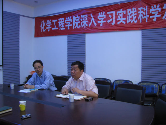 首先,化学工程学院屈一新书记汇报了学院学习实践科学发展观活动学习调研阶段取得的成果和分析检查阶段的工作开展情况。学院通过深入学习使广大党员干部提高了认识,深入调研使学院领导干部掌握了实际问题。这为分析检查阶段找准问题、理清思路提供了理论依据和实践方向。另外,找准学院存在的突出问题,明确科学发展思路,又为下一阶段的整改落实指明了方向。随后,陈建峰院长就学院学科发展方向、创新平台特色化建设、大化工创新人才培养、交叉学科建设等方面进行了阐述,认为创新人才培养关键在教师队伍建设,提出学院要加大力度培养青年学术骨干和学术**,要进一步加强实践教学以及教学和科研的融合,要通过承担国家重大项目拓展绿色化工、能源化工等新的学科方向、推动交叉学科建设。