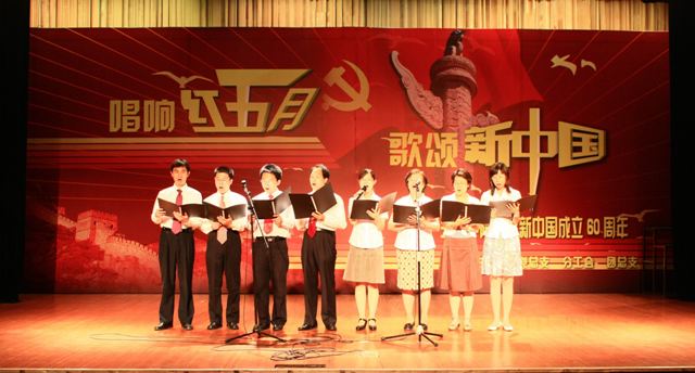 为迎接新中国成立60周年,纪念五·四运动90周年, 5月24日晚6:30,生命学院在科学会堂隆重举行主题为“唱响红五月、歌颂新中国”的歌唱晚会。生命学院院长袁其朋、党总支书记张丽叶、副院长苏海佳、副院长邓利、副院长刘军锋、全院教职工以及生命学院全体同学参加了此次红歌会。
