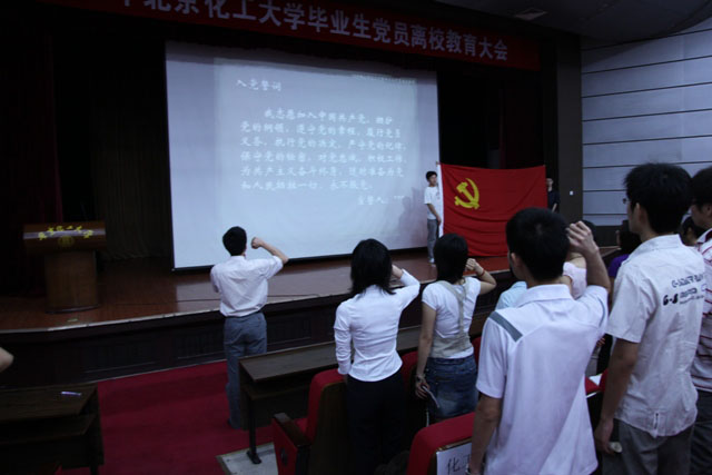 6月12日,2009年北京化工大学毕业生党员离校教育大会在科学会堂召开。研究生院副院长许利民、学生工作办公室副主任贾涛、组织部杨明出席了本次大会。所有毕业生本科生党员、研究生党员分别在上午和下午参加了大会。