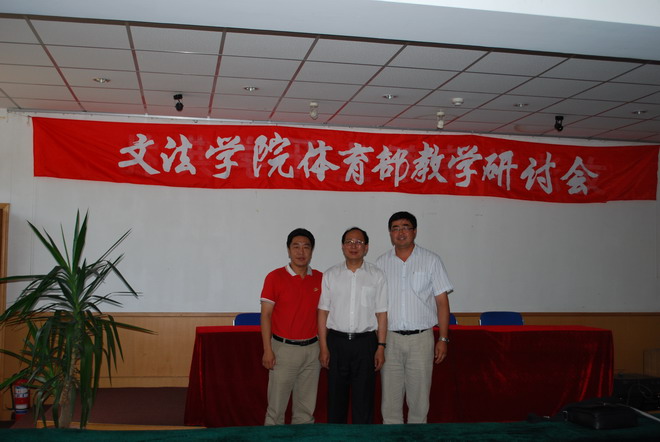 6月12--13日,文法学院体育部教学研讨会顺利进行。为了更好地深化教学改革,适应新时期的体育教学任务,提高教学质量及教师素质,体育部特聘请全国高校体育教学指导委员会副组长、北京市大学生体育协会教学群体科研部主任、清华大学体育部教授张威,为我部作了题为“当前高校改革发展现状”的讲座。文法学院书记刘玲老师作为学院领导代表莅临现场,认真听取了此次报告。
