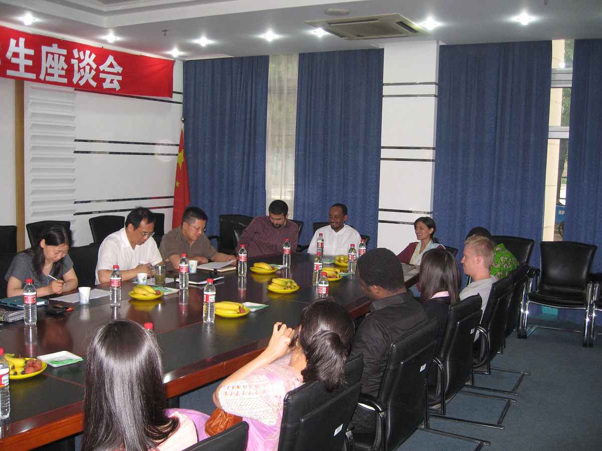 7月8日下午,2009北化毕业留学生座谈会在逸夫会议中心会议室召开。副校长陈标华、校友总会秘书长、校办主任王玉、国际交流与合作处处长耿海萍、负责留学生管理与教学工作的几位老师以及十余名2009年毕业的留学生出席了会议。
