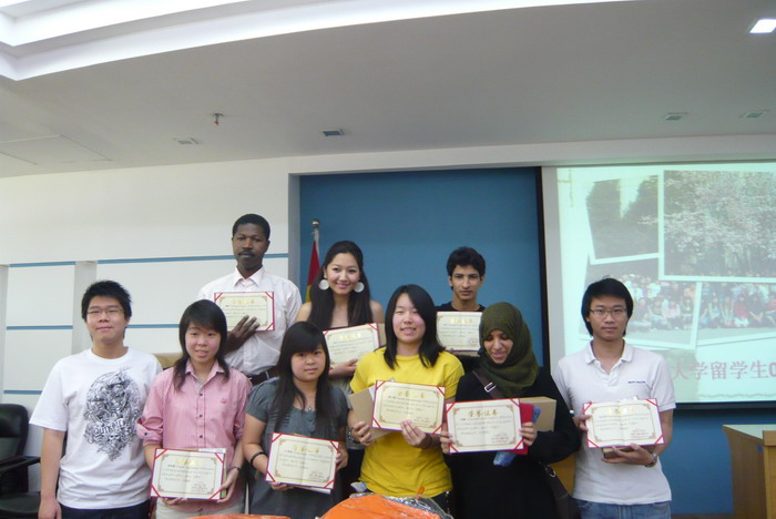 7月9号上午10点,炎炎酷暑中,图书馆中心会议室里欢笑声声、掌声阵阵,2009年春季学期留学生结业暨颁奖典礼正在这里火热进行中,与他们共同分享这一难忘时刻的有国际处处长耿海萍、国际处留学生管理人员及对外汉语教师等。