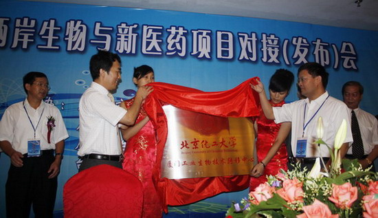 由厦门市科技局主办、厦门新兴产业促进中心承办、台湾财团法人生物技术发展中心协办的“海峡两岸生物与新医药产业科技交流会”于2009年8月28日在厦门成功举办,会上隆重举行了北京化工大学与厦门市科技局共建的“北京化工大学厦门工业生物技术转移中心”签约暨揭牌仪式。北京化工大学谭天伟副校长亲自率队前往,生命学院袁其朋院长、邓利副院长和科技处张新生副处长参加了此次活动。厦门市科技局徐平东副局长和北京化工大学谭天伟副校长首先签署了双方共建“北京化工大学厦门工业生物技术转移中心”协议书,然后在欢庆的礼花中共同为其揭牌。随后,袁其朋院长为参会的海峡两岸的专家和企业做了“生物和新医药产业发展趋势”报告。