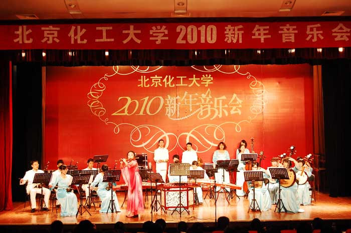 12月27日晚18:30,我校科学会堂灯火辉煌、掌声雷动,由校团委和校国家大学生素质文化教育基地共同主办的北京化工大学2010新年音乐会在这里为化**生献上了一场古典与现代并存,传统与创新融合,气势恢宏,荡气回肠的饕餮盛宴。校党委副书记兼副校长任新钢老师以及我校各部处、学院领导、老师与同学们欢聚一堂,共同欣赏了本次新年音乐会。