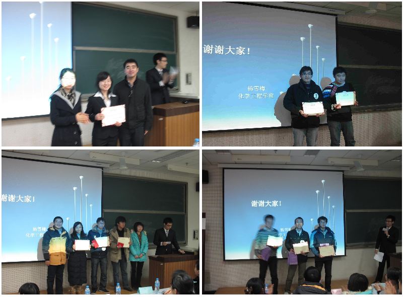 比赛中,各位选手首先对自己的兴趣爱好进行分析总结,并以此为根据选择了自己的职业目标和定位,然后对职业理想给出自己的认识。最后,各位选手根据自己的目标给出详细的近期和长期规划。每位选手展示完毕后,评委们会给予点评和提问,并且给出中肯的建议。来自化研0901的崔新悦同学凭借精彩的发言,有重点的介绍了自己的职业目标和实现的途径,并且对评委的提问给出了有理有据的回答,最终脱颖而出,荣获一等奖。赵俊和徐涛荣获二等奖。王乾、苏广训、杨雪梅获三等奖。高文彬、李好义、黄建彪获得优秀奖。