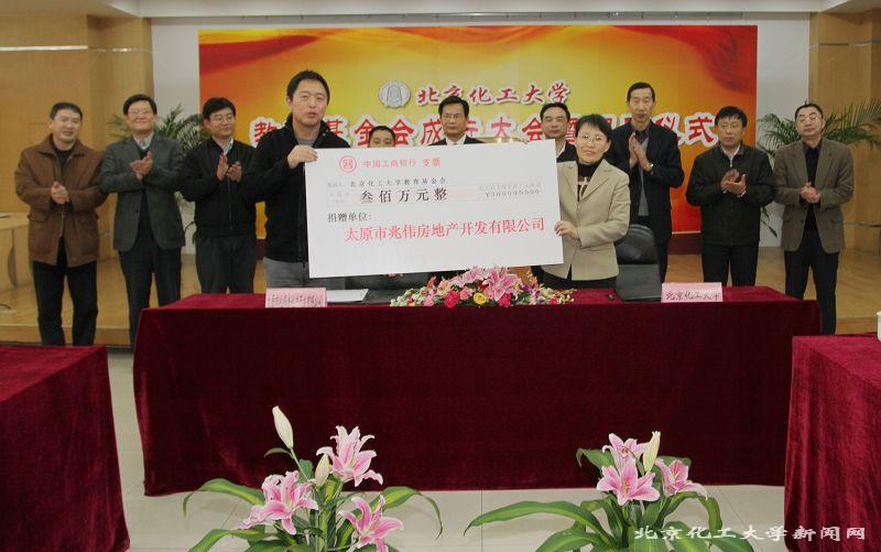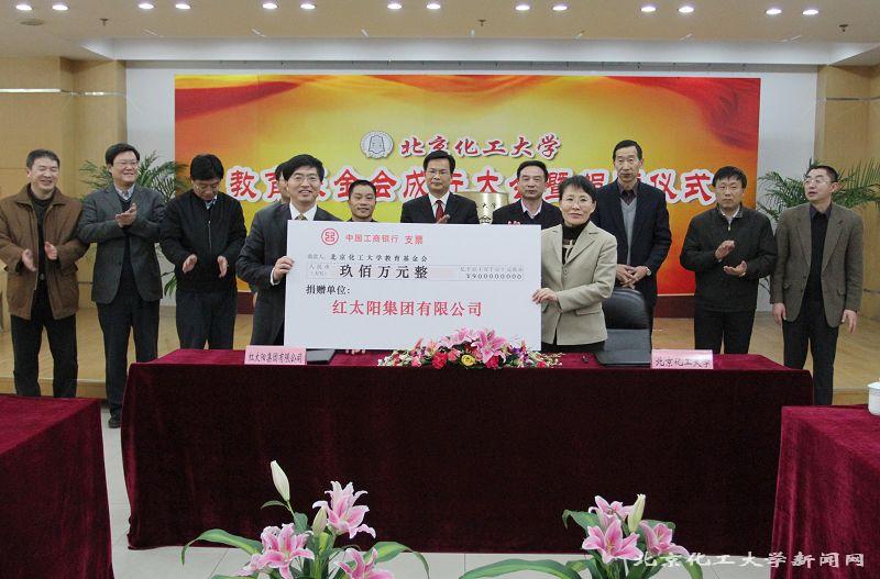 在捐赠仪式上,红太阳集团有限公司向教育基金会捐赠900万元人民币;太原市兆伟房地产开发有限公司向教育基金会捐赠300万元人民币。