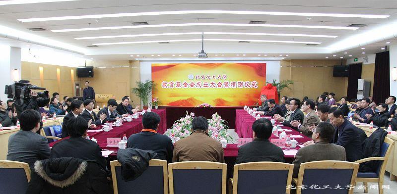 最后,校党委书记、教育基金会理事长王芳讲话。她首先感谢各级领导对我校教育基金会在申报过程中予以的大力支持和帮助。她指出,成立教育基金会,是我校为建设高水平研究型大学、适应现代大学发展的需要所做出的一项重大决策,旨在多渠道筹集办学资金,争取国内外企事业单位和广大校友、社会各界朋友的支持和捐助,增强学校的办学实力和水平,推进学校快速发展。基金会成立后应着重做好四个方面的工作:一是积极争取各方面的大力支持,不断创新募集资金的办法和渠道,探索基金会运作的新思路、新途径,努力筹措资金,不断壮大教育发展基金。二是要严格履职,自觉遵守国家法律,依照基金会章程办事,科学管理,接受监督,民主决策,管好基金、用好基金,不断提高基金会的公信力和社会影响力。三是要进一步加强与兄弟院校基金会的交流与合作,学习先进的管理经验,建立科学规范的管理制度和运行机制,促进我校教育基金会健康、科学的发展。四是要进一步扩大基金会在广大校友和社会各界的影响,集思广益,积善成德,使基金会不仅成为广大校友、各界朋友智慧和友谊的聚集地,同时也成为彰显学校精神、展示学校形象的重要窗口,成为有力支持学校建设与发展的重要力量。同时,她殷切期望,在社会各界、广大校友的鼎力相助下,通过我们基金会理事会成员、基金会工作人员及全校师生的共同努力,北京化工大学教育基金会的工作一定能做好,一定能为高水平研究型大学的建设做出积极贡献!