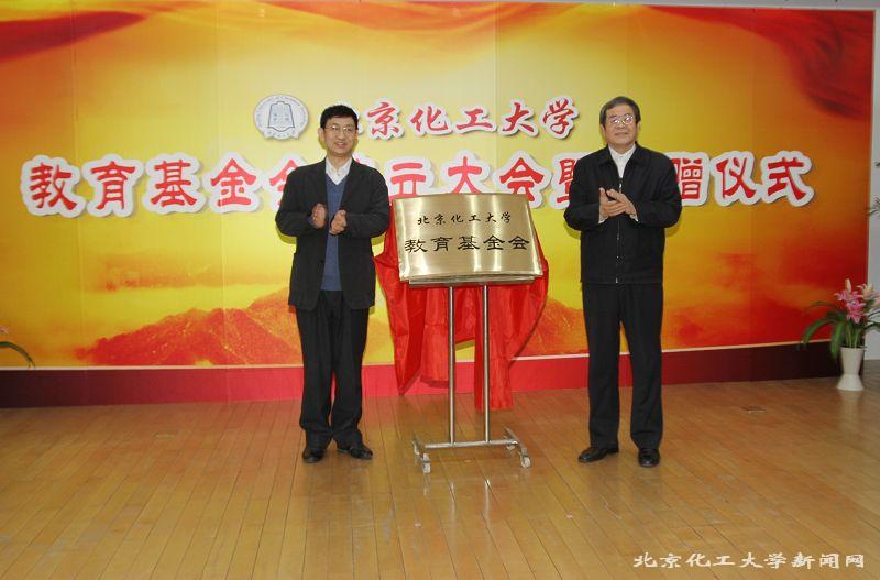 北京市社团办登记处李楠宣读了市民政局《行政许可决定书》并颁发了“基金会法人登记证书”。随后,中国教育发展基金会秘书长张中原与校长王子镐共同为北京化工大学教育基金会揭牌。