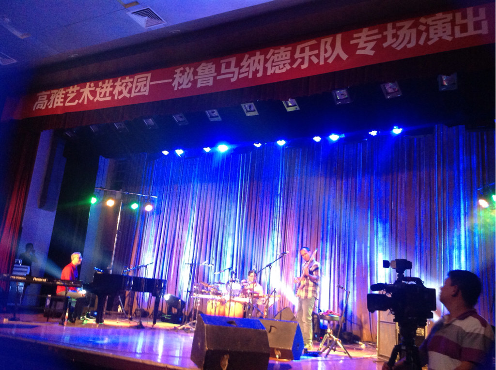 来自南美洲的爵士风情呼应着夏日的热情,“点燃”科学会堂。5月23日晚,高雅艺术进校园——秘鲁马纳德乐队专场演出在科学会堂举办。秘鲁驻华大使贡萨洛·古铁雷斯、厄瓜多尔驻华大使何塞·玛利亚·博尔哈与我校师生一同现场观看演出。