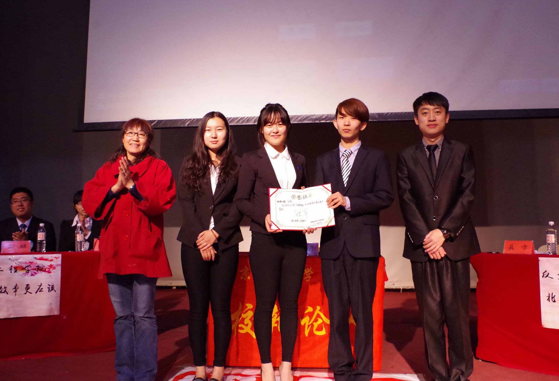 在纪念五四运动96周年之际,为引导青年学生回顾历史,继承和发扬五四精神,以“青春思辨”的方式践行社会主义核心价值观,展现我校学子热爱祖国、积极创新、探索科学的精神风貌,4月初,校团委、北区办联合校辩论队举办了“百辩青春”——五四辩论交流赛。在经历了6场淘汰赛和16场院际交流赛后,5月11日下午,辩论赛决赛在北校区多功能厅举行,材料学院与机电学院围绕“提高水资源利用效率更应该靠政府/人民”话题展开了激烈的讨论。北区办副主任于景华、校团委相关负责人出席决赛现场并为获奖队伍颁奖。