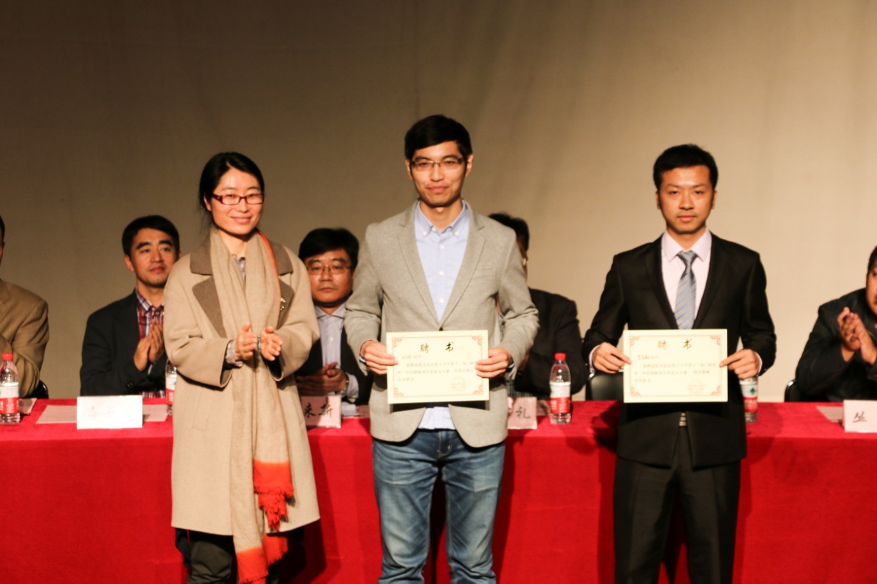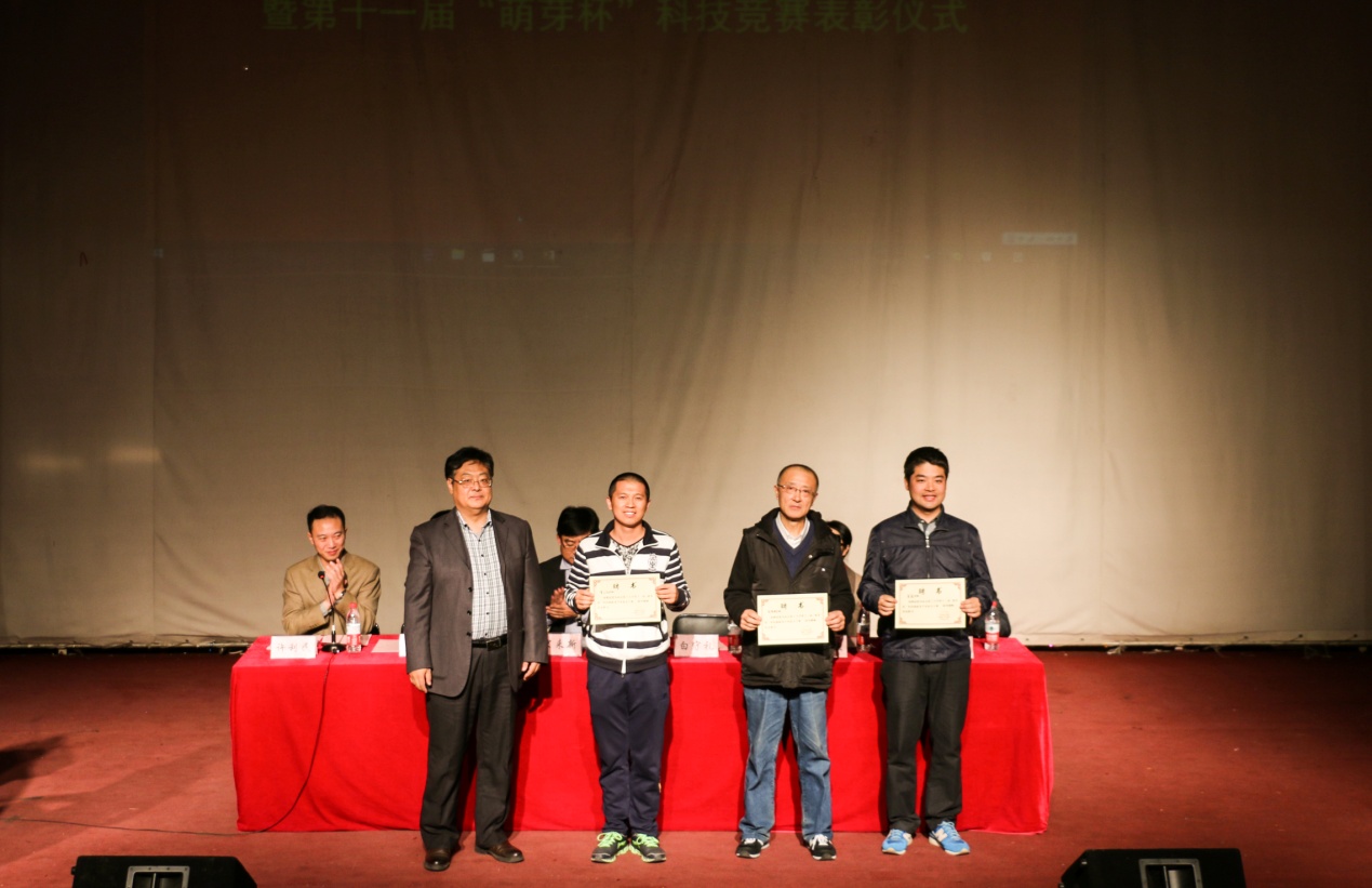 学生工作办公室主任商云龙为获奖团队代表颁奖 仪式上,北区办李雪光老师对第十一届“萌芽杯”科技竞赛的开展情况进行了总结,并与在座的学生分享了三个萌芽杯的小故事,鼓励低年级学生通过萌芽杯的学习,历练自己。学工办主任商云龙老师宣读第十一届“萌芽杯”科技竞赛获奖团队名单和优秀组织奖名单,并为获奖团队代表颁奖。校长助理宋来新老师为优秀组织奖获奖学院颁奖。理学院陈炳达同学作为获奖团队学生代表发言,分享了自己往来东、北校区不断进行实验,在磨砺中感受科研魅力的经历。