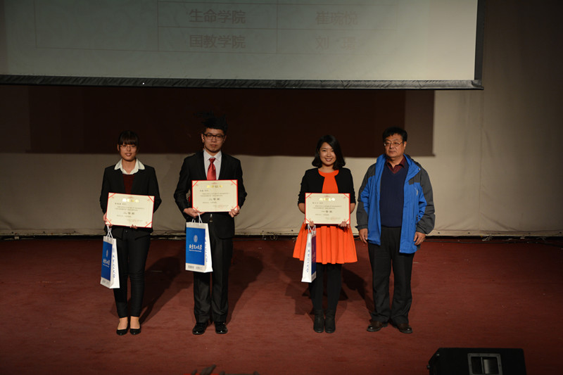 “院周”启动仪式现场,与会领导和嘉宾为2015年“勿忘国耻,圆梦中华”——“我和我的学生”及“我和我的辅导员”演讲比赛获奖辅导员、学生代表颁奖。辅导员获奖代表机电学院赵天雷,学生获奖代表文法学院胡宁宁、化工学院王聪进行了精彩的展示。