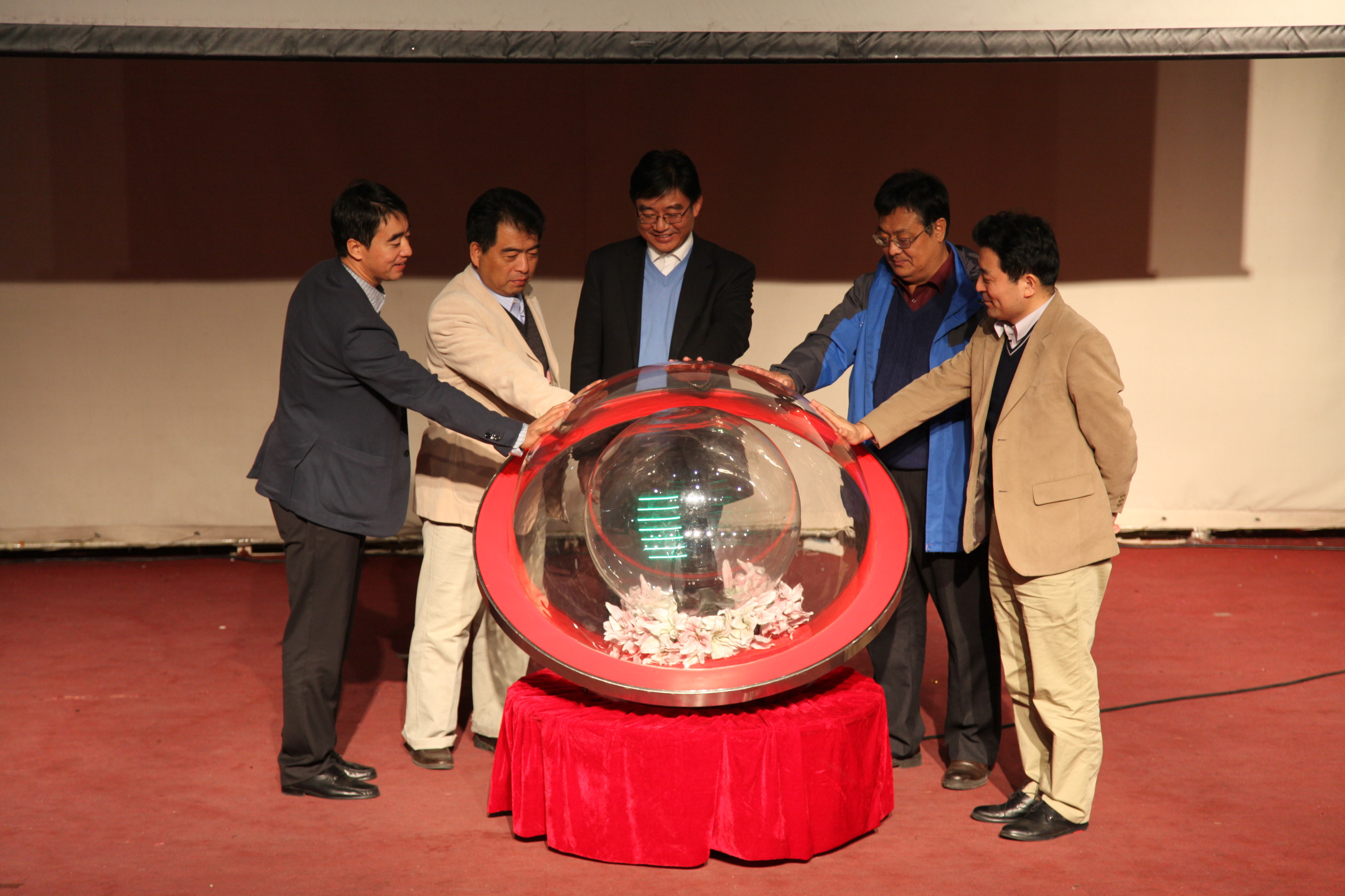 与会领导和嘉宾共同触动写有“2015年‘院周’活动启动”的水晶球,“院周”活动正式开幕。